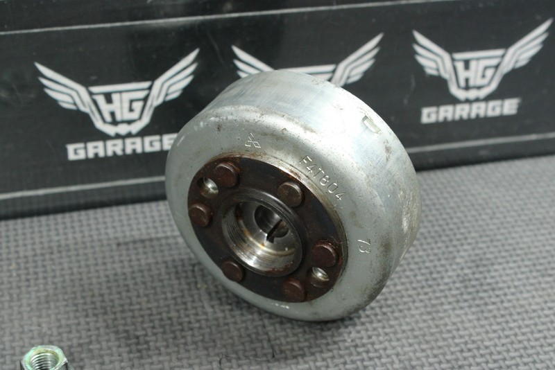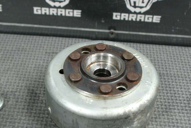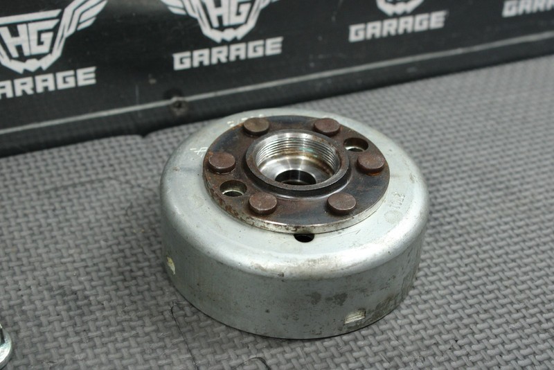 This stator flywheel is in very good condition and shows normal signs of wear. Nice functioning shape. All threads intact. Ready to mount, and ride.