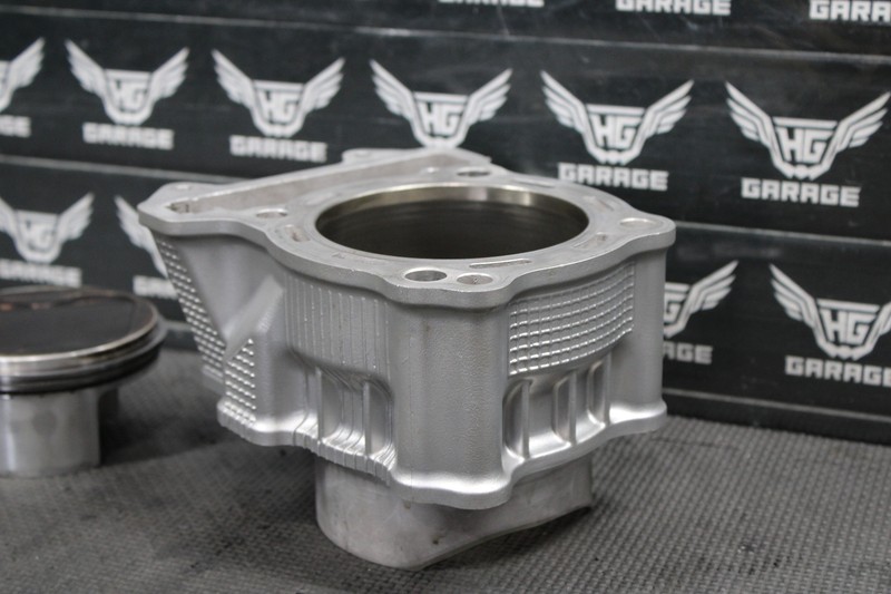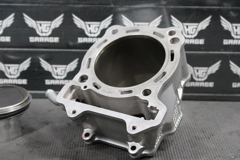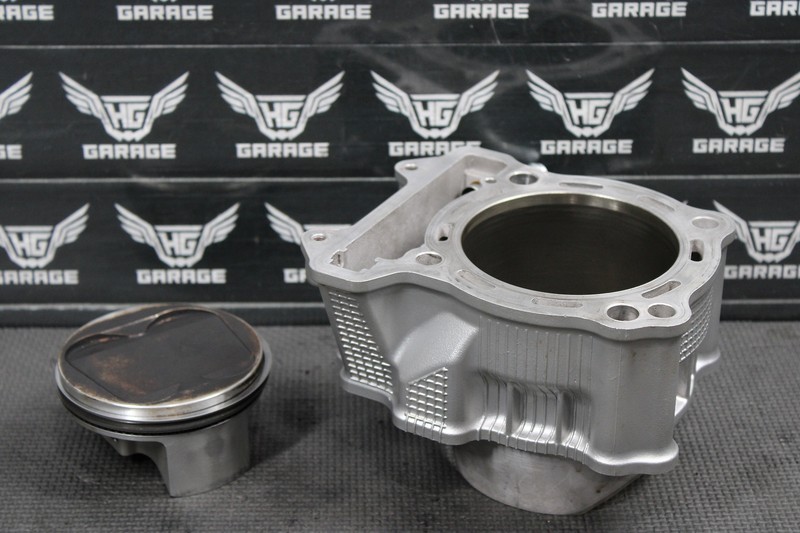 This cylinder with piston is in very good condition and shows normal signs of wear. Nice running shape, removed from a strong running bike with great compression. No scratches, or gouges in cylinder bore that can be felt. Ready to install, and run!