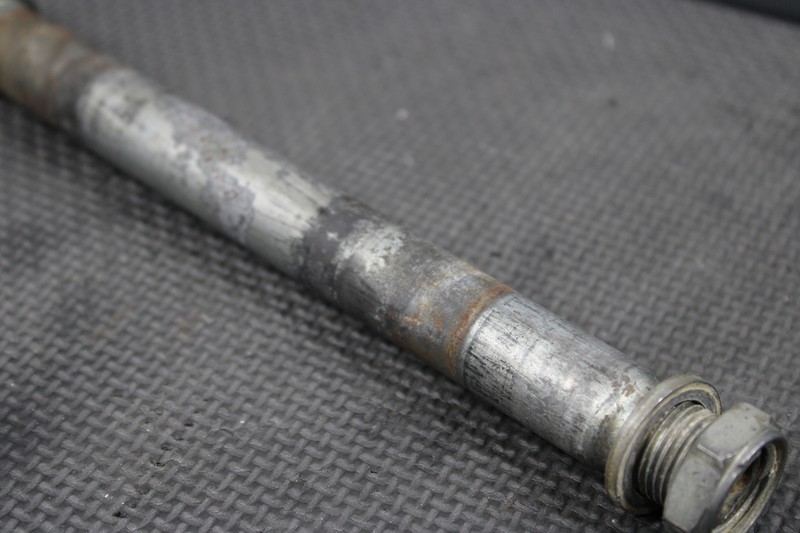 This front axle is in very good condition and shows normal signs of wear. No mashed ends, or damaged threads. Ready to install and ride.