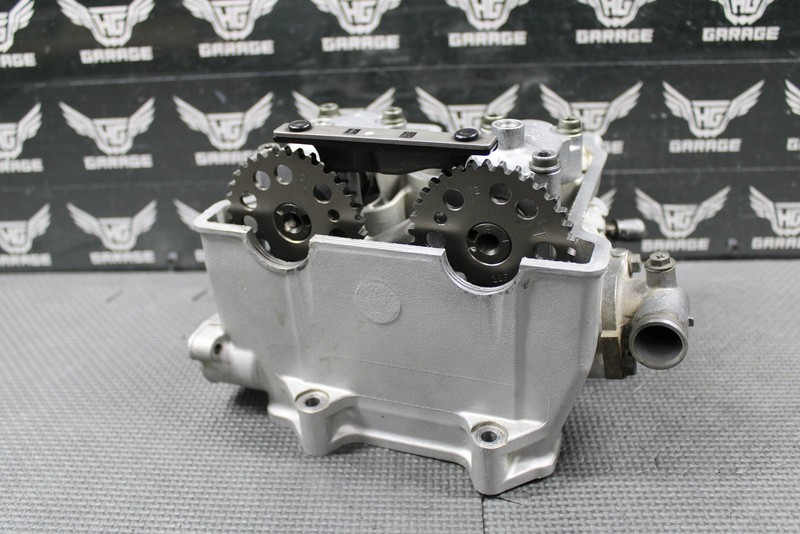 This OEM cylinder head is in very good condition with normal wear. Removed from a strong running machine. Cam journals have no scoring or damage and cams rotate freely. Valve clearances are within spec and valves seal nicely. Intake shims are both around 2.85mm and exhaust are around 3.10mm. All sealing surfaces and bolt holes are intact. Ready to install and ride!