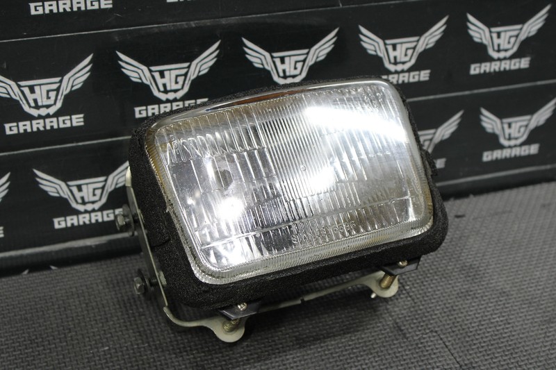 This headlight housing is in very good condition and shows normal signs of wear. No cracks or broken mounting tabs. Headlight bulb, rubber socket seal not included as shown, this is just the headlight housing alone. Removed from a low hour bike. Ready to assemble and ride.