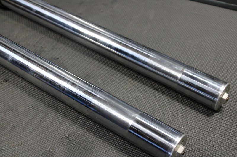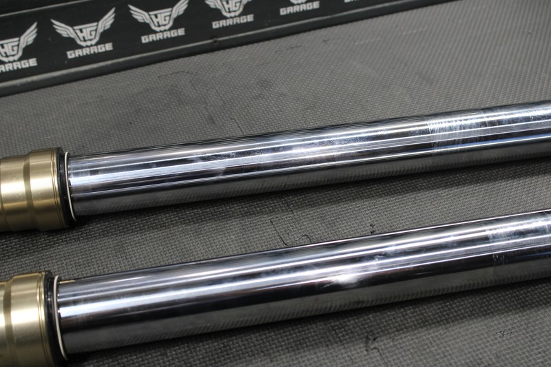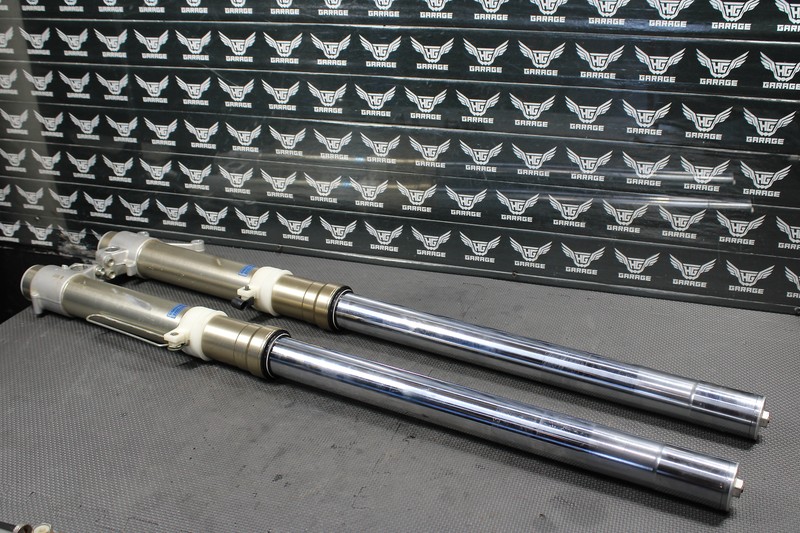 This front fork set is in very good condition and shows normal signs of wear. Great dampening, and rebound. No leaks seen when tested/ compressed, and both forks functioned and cycled smoothly. All threaded holes intact and thread properly. No deep scratches or pit marks seen or felt on upper chrome shafts. Some light wear marks and scratches on lower tubes as shown, nothing excessive or major and is purely cosmetic. Ready to bolt up and ride.