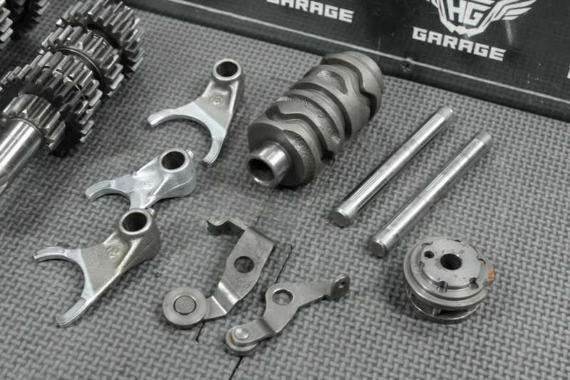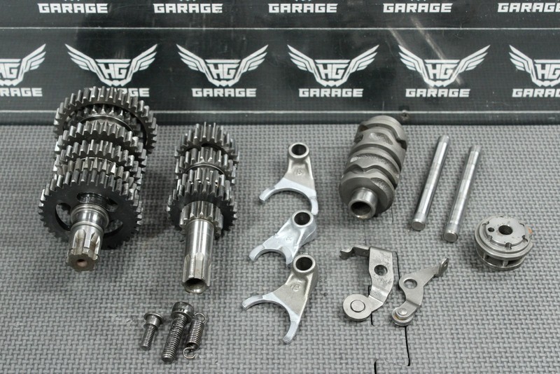 This transmission is in good condition and shows normal signs of wear. No cracked, or chipped teeth on any of the gears. Shift forks in great shape with minor wear. No shift shaft included. Ready to dropin, and ride.
