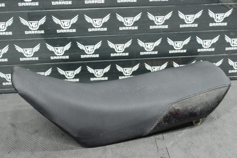 This seat is in good condition and shows normal signs of wear. Seat cover has some cracking in the rear as shown. Does not effect how it mounts, and is purely cosmetic. All mounting tabs intact with no excessive wear. Ready to bolt on.