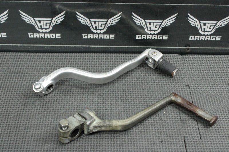 This kickstart lever is in very good condition and shows normal signs of wear. Nice functioning shape. No excessive wobble, or slop in either kickstart, or shifter. Ready to install, and ride.