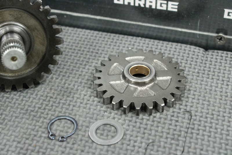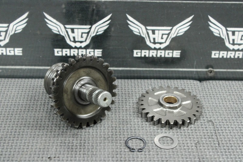 This kickstart gear with shaft is in very good condition and shows normal signs of wear. Nice functioning shape. No cracked, or chipped teeth. Ready to install, and ride.