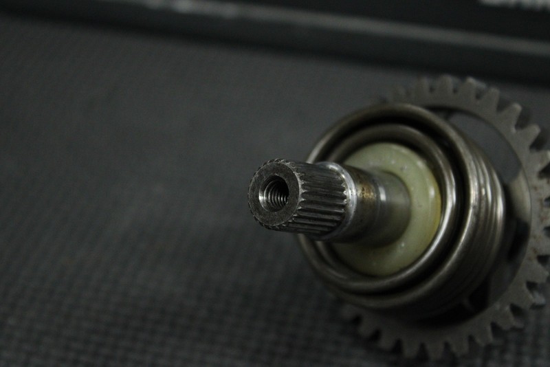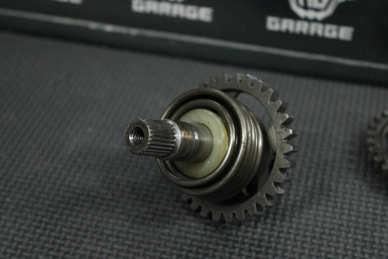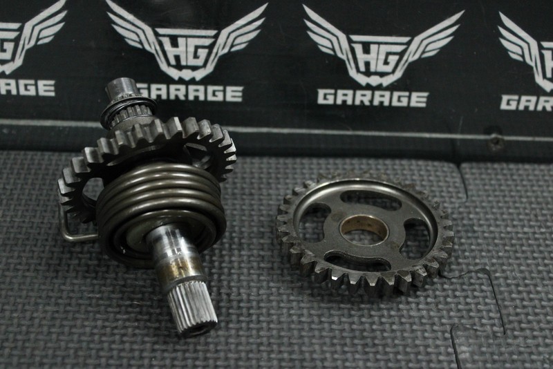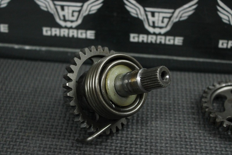 This kickstart gear with shaft is in very good condition and shows normal signs of wear. Good functioning shape. No cracked or chipped teeth. Ready to install, and ride.