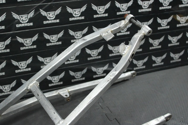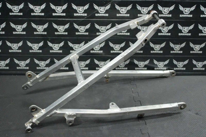 This oem subframe is in fair condition and shows normal signs of wear. No cracks, welds, or repairs. One tab for exhaust is missing its threaded inserts, and had some wear from a loose bolt/nut being installed. Not cracked and can still be used with a bolt, and nut. All other threaded tabs intact. No bends seen. Ready to mount, and ride.