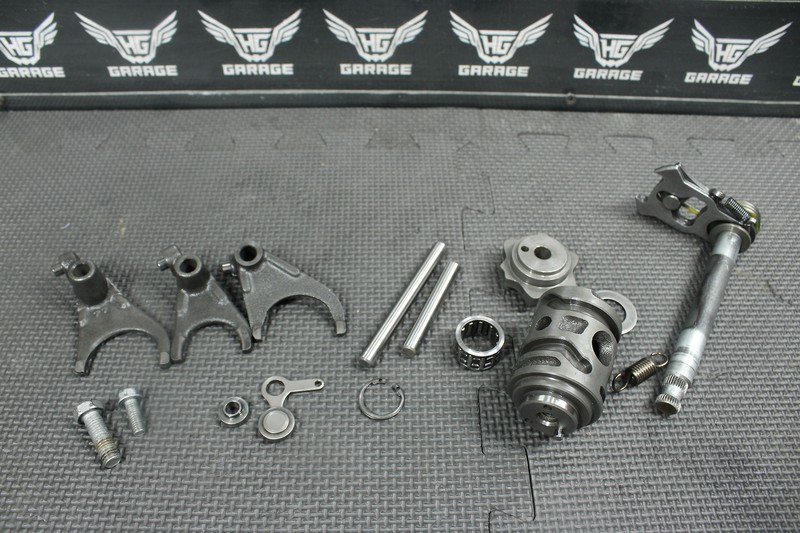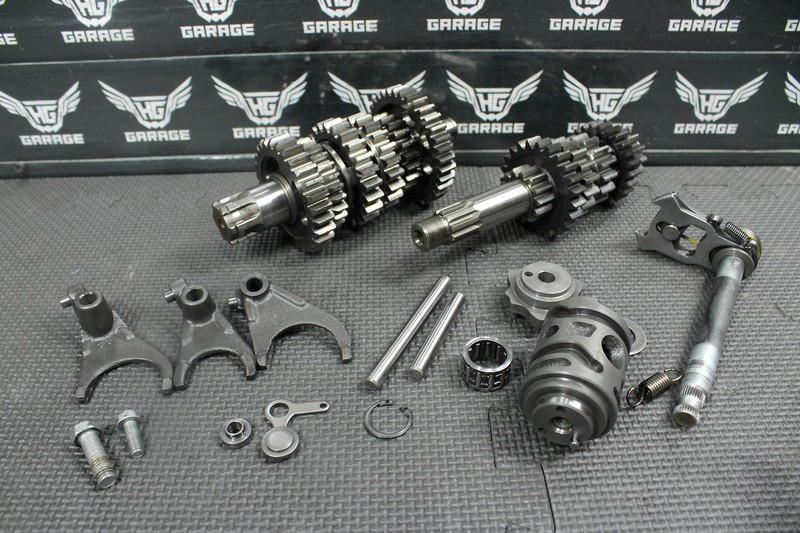 This transmission is in very good condition and shows normal signs of wear. No cracked, or chipped teeth on any of the gears. Shift forks, and shift dog in great shape with low wear. Ready to assemble and ride.