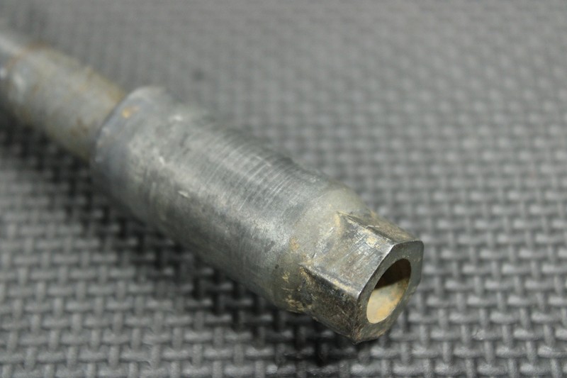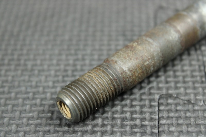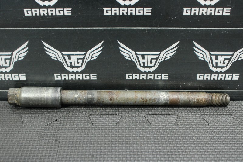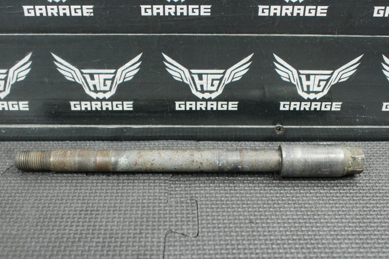 This front axle is in very good condition and shows normal signs of wear. All threads intact. Missing axle nut.