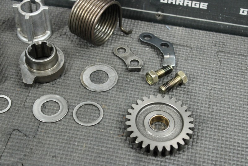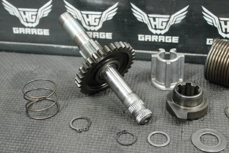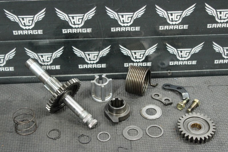 This kickstart gear with shaft is in very good condition and shows normal signs of wear. Nice functioning shape. No cracked, or chipped teeth. Ready to assemble, and ride.