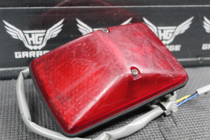 This tail light assembly is in good condition and shows normal signs of wear. No cracks or breaks in housing. Good functional shape. Ready to install, and ride.