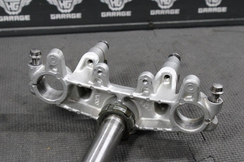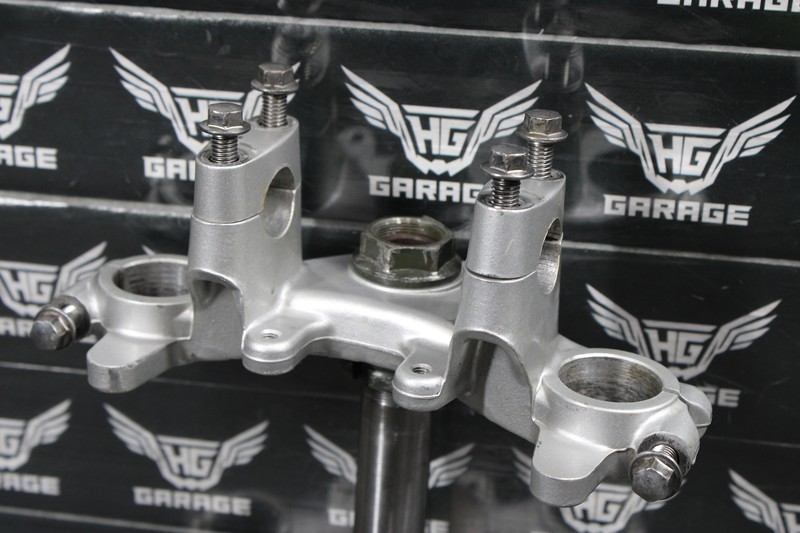 This triple tree set is in very good condition and shows normal signs of wear. No bends or damage. All threaded holes are intact. Bearing turns freely. Good riding shape