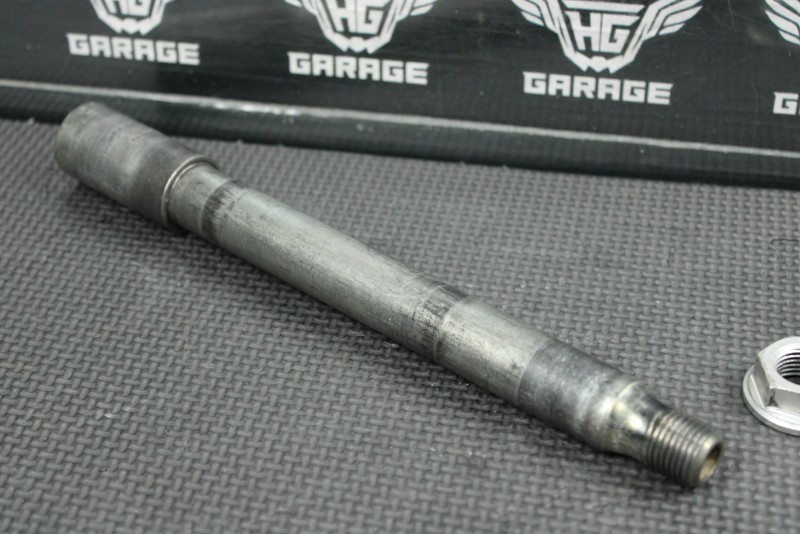 This front axle is in very good condition and shows normal signs of wear. No bends, or any mashed threads. Ready to install, and ride.