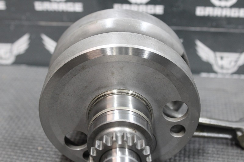 This crankshaft is in very good condition and shows normal signs of wear. No cracks, welds or repairs. Good running shape, removed from a strong running machine. No verticle play in rod, side to side within spec. All splines and threads intact. Ready to install, and ride!