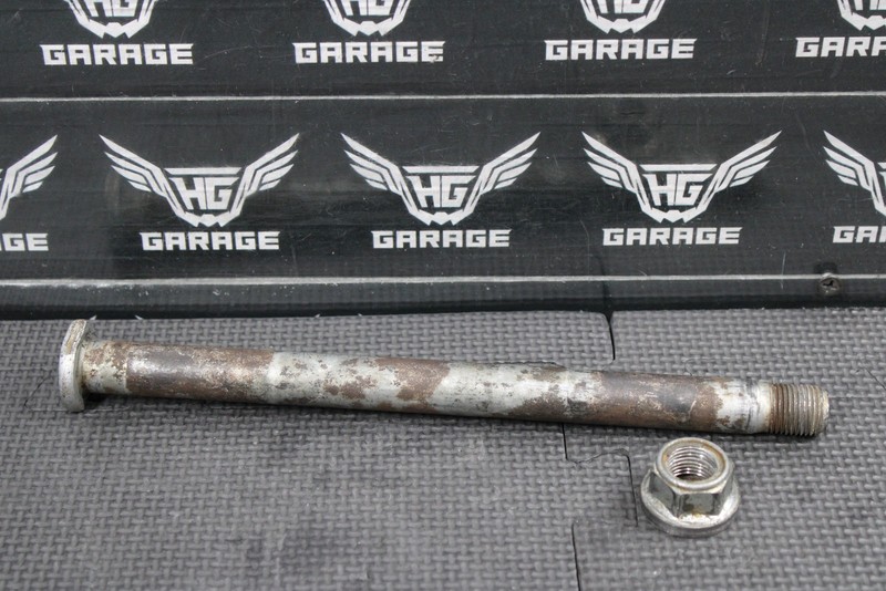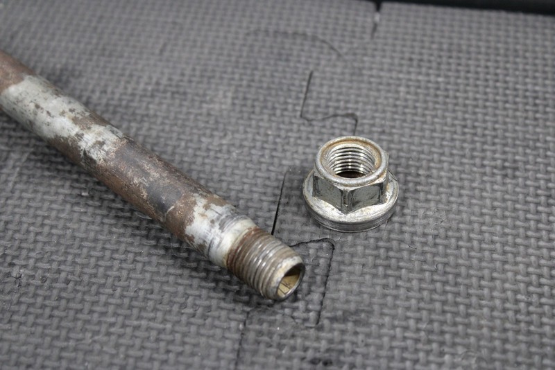 This swingarm bolt is in very good condition and shows normal signs of wear. Good working shape. All threads intact. Ready to install!