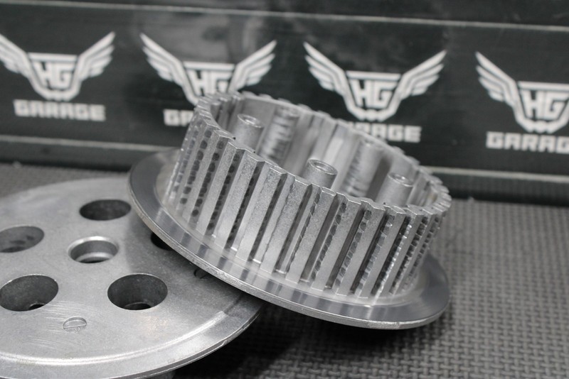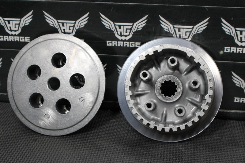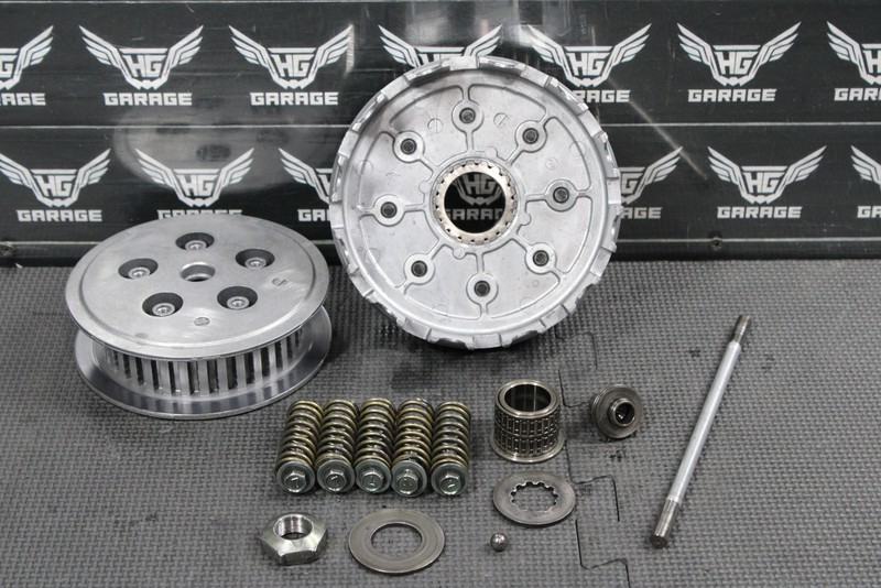 This complete clutch is in Pretty good condition and shows some signs of wear. Inner and outer hub both have wear as shown. Basket fingers have some grooving, nothing deep, and when assembled clutch did not stick or slip. Overall good running shape with some wear as stated. Ready to install, and run.