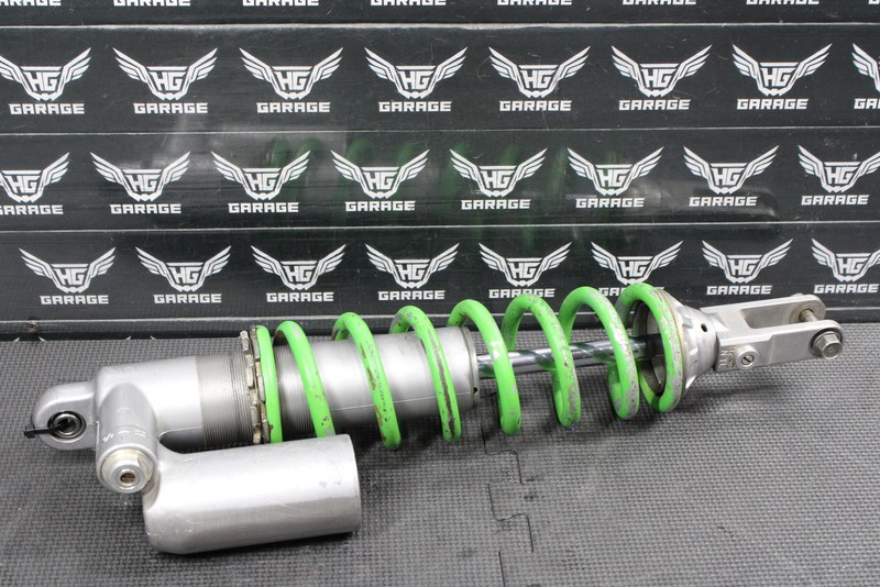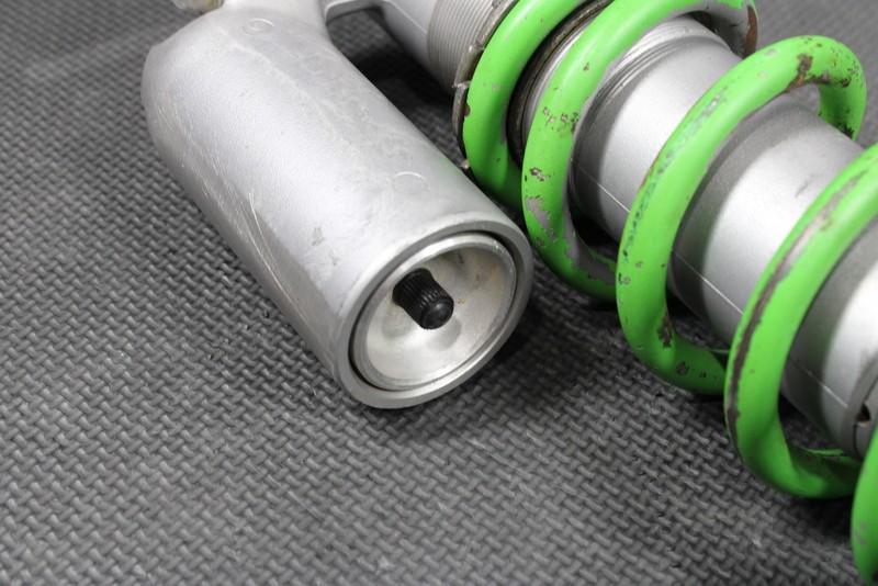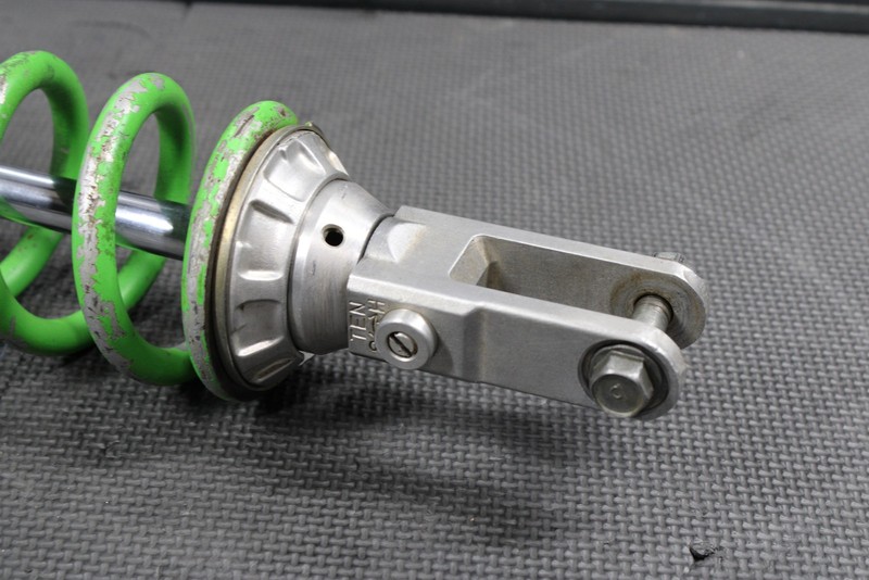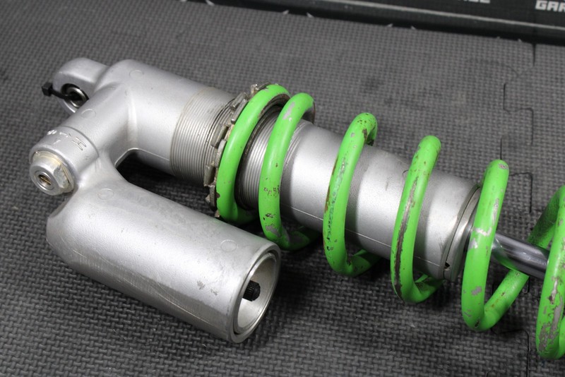 This rear shock will need to be rebuilt before installed, and cannot be ran as is. No cracks, or breaks. Seals leak, and shock has zero rebound dampening. Lower shock shaft nice and straight no deep scratches or gouges, some minor surface haze/wear overall good working shape. Upper shock body in good shape with no cracks, or stripped threads. Cannot be ran as is, and will need to be rebuilt in order to function properly.