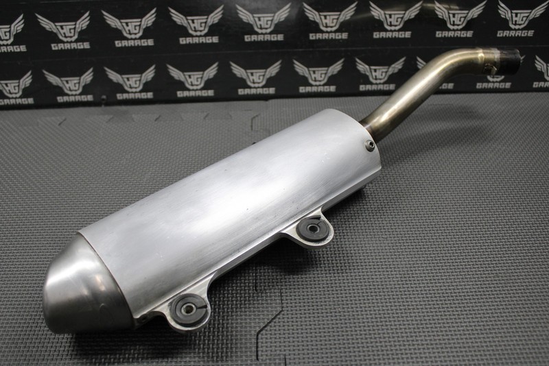 This FMF Powercore 2 Shorty muffler is in good condition and shows normal signs of wear. Removed from a good running bike. All tabs and mounts are intact. No cracks or holes. FMF PN: 022024