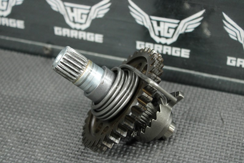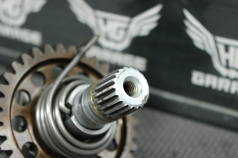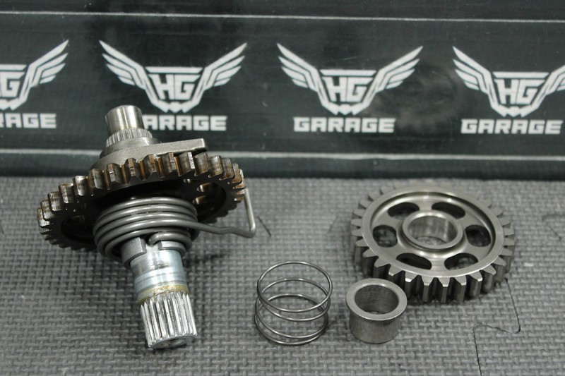 This kickstart gear with shaft is in very good condition and shows normal signs of wear. No cracked, or chipped teeth. Great functioing shape. Ready to install, and ride!
