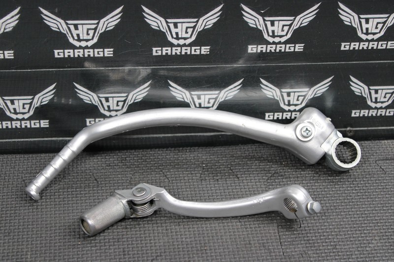 This kickstart lever is in very good condition and shows normal signs of wear. Nice functioning shape. Shifter pedal has some minor slop in the tip, however still functions properly. No excessive slop or wobble in kickstart lever. Ready to mount, and ride!