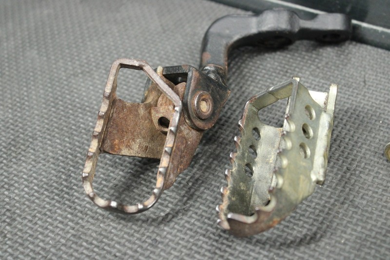 This Footpegs is in good condition and shows normal signs of wear. Nice functioning shape. No cracks, or breaks, and both mount as they should. Ready to mount, and ride.