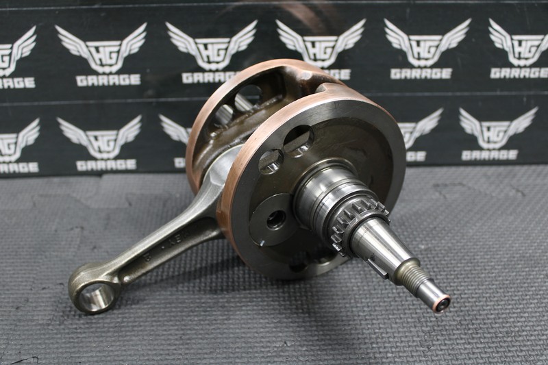 This crankshaft is in great condition with minor wear. Great runnning shape with no damage or issues. Connecting rod bearing spins freely with zero vertical play. Shafts and threads are all intact. Bearing on left side shaft turns freely with no excessive wear. Ready to install and run!