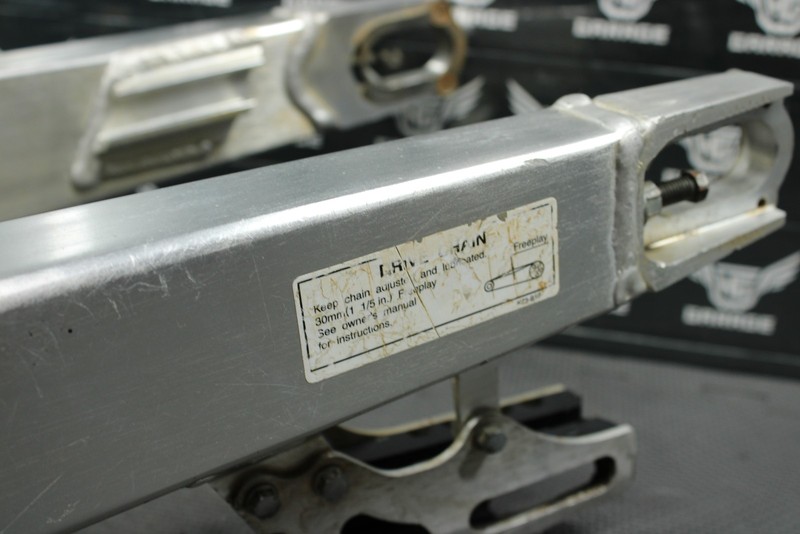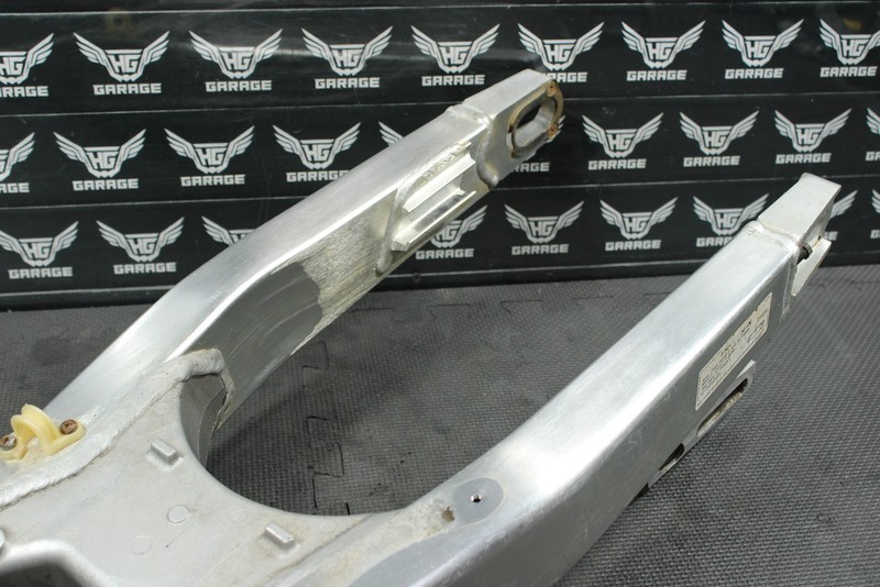 This swingarm is in very good condition and shows normal signs of wear. No cracks, welds, or repairs. All threaded holes intact. Has some minor chain wear, not through to bearing cavity, and seals properly. Bearings rotate freely, have a very minor amount of play when inspected, and is recommended they be replaced before installed for optimal performance. However can be ran as is. Ready to mount, and ride.
