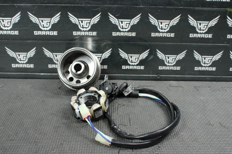 This aftermarket stator and oem flywheel is in good condition and shows normal signs of wear. Great running shape, fully tested ready to install and ride. No cracked, or split wires. Ready to bolt on and ride.