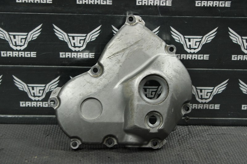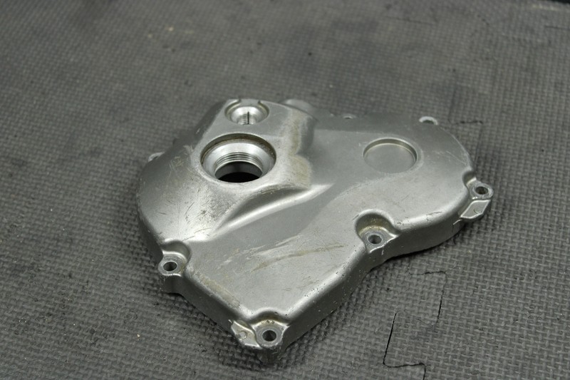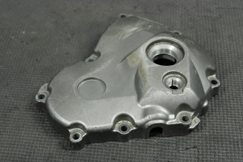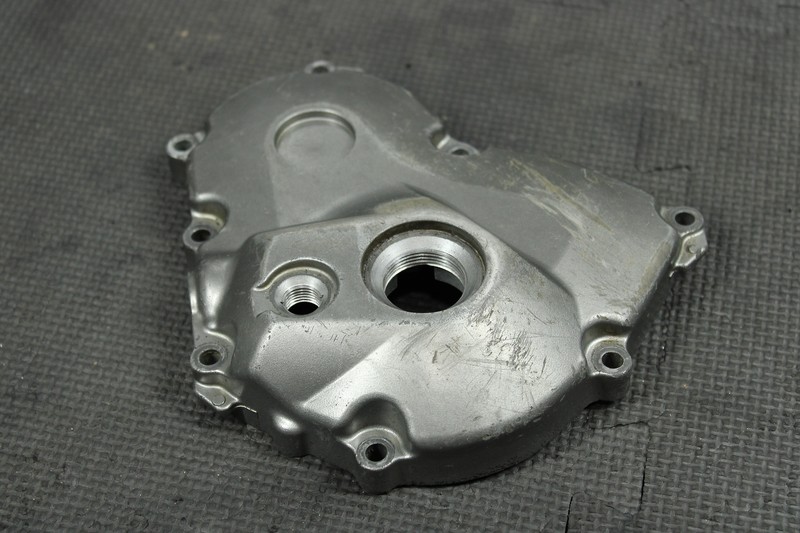 This stator cover is in very good condition and shows normal signs of wear. One bolt hole has a very minor crack formed as shown, still mounts, and seals properly. Ready to install, and ride.