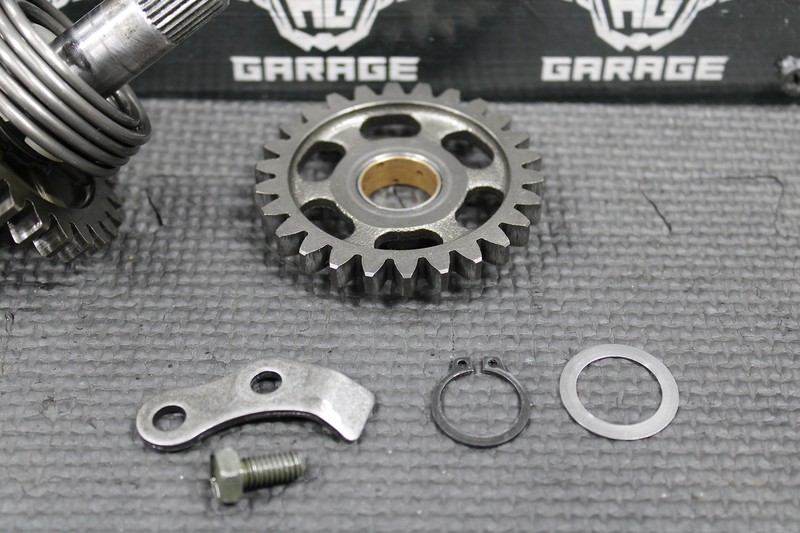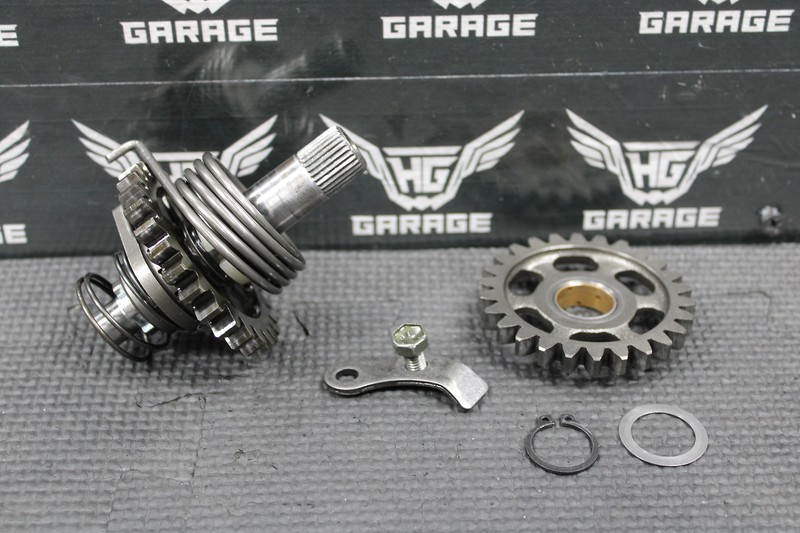 This kickstart gear with shaft is in great condition with minor wear. No damage or issues. All splines and threads are fully intact. Ready to install and run!