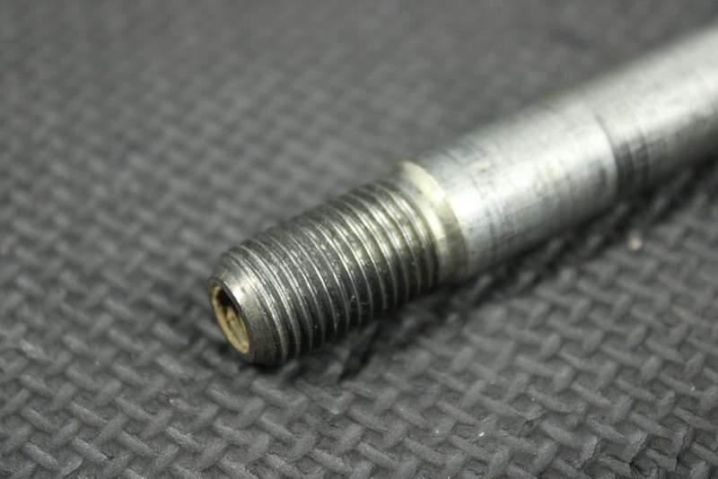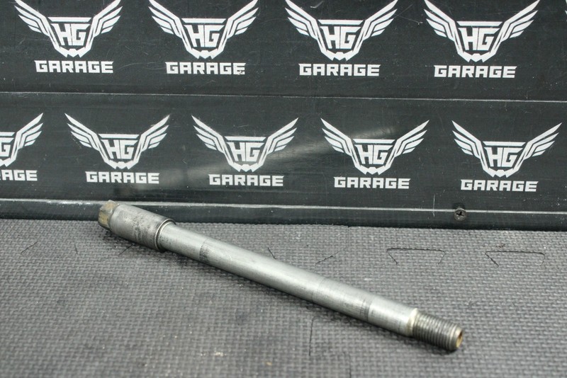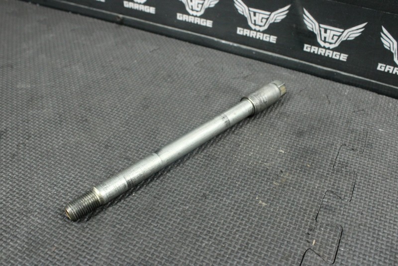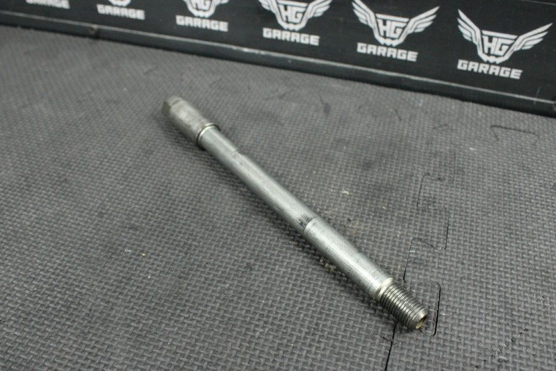 This front axle is in good condition and shows normal signs of wear. No cracks, or bends. All threads intact. Ready to bolt on and ride.