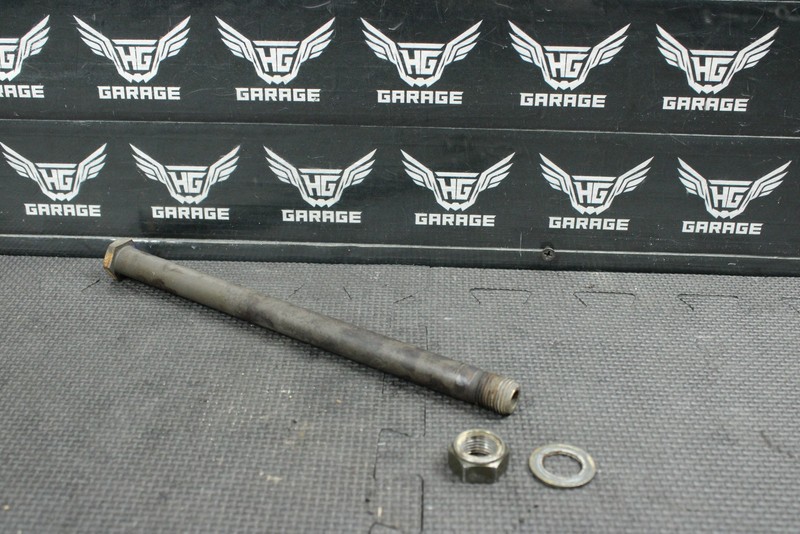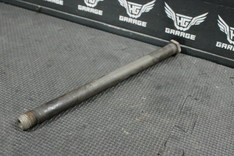 This swingarm bolt is in good condition and shows normal signs of wear. No cracks or bends. All threads in good condition. Ready to bolt on and ride.