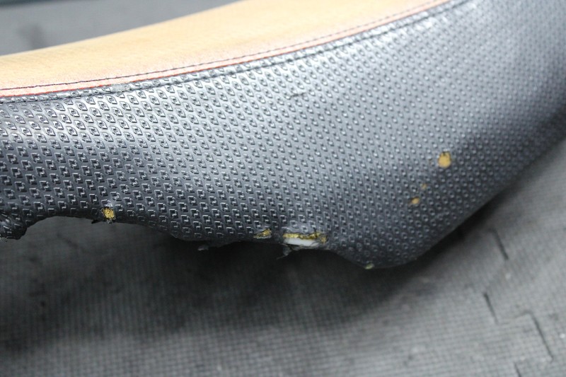 This seat is in fair condition and shows normal signs of wear. Seat cover has many rips and tears in it as shown, and should be replaced before installed. No cracked, or broken mounting tabs, and seat mounts as it should. Ready to bolt on.