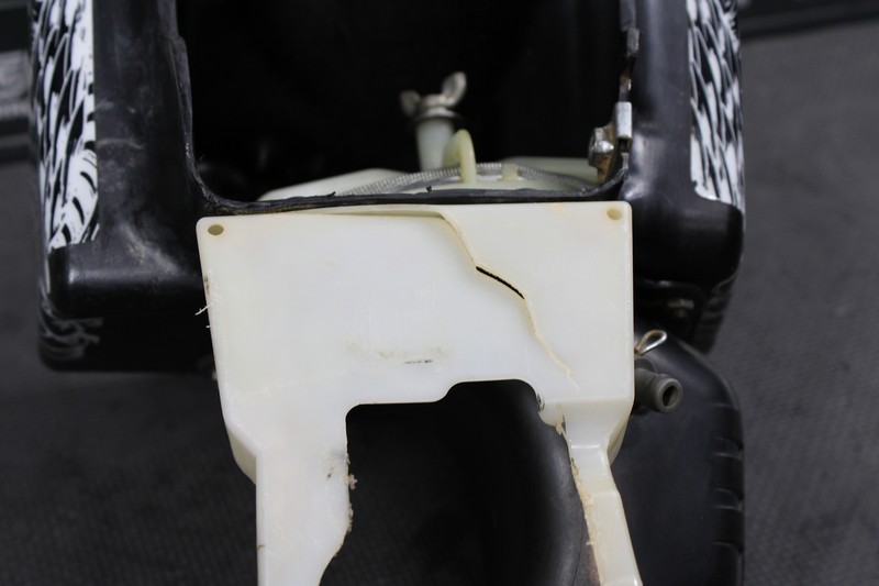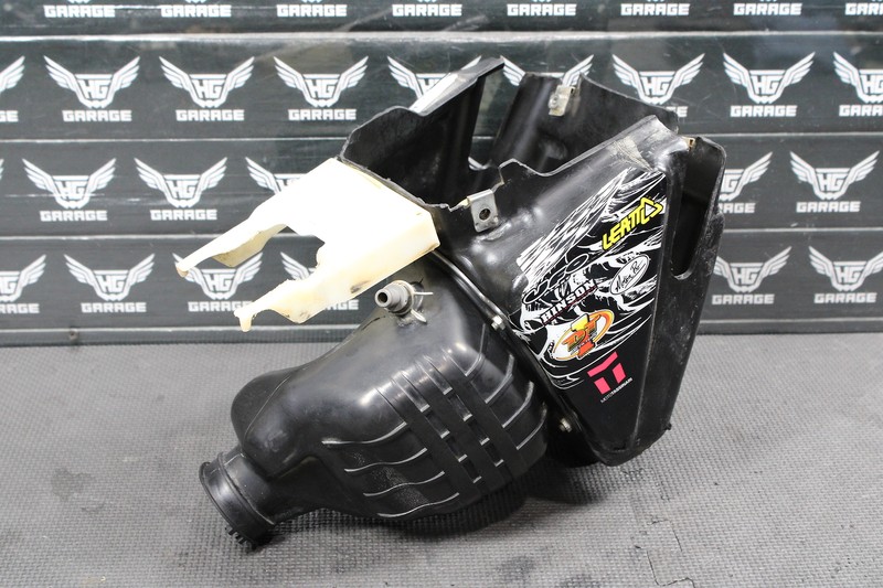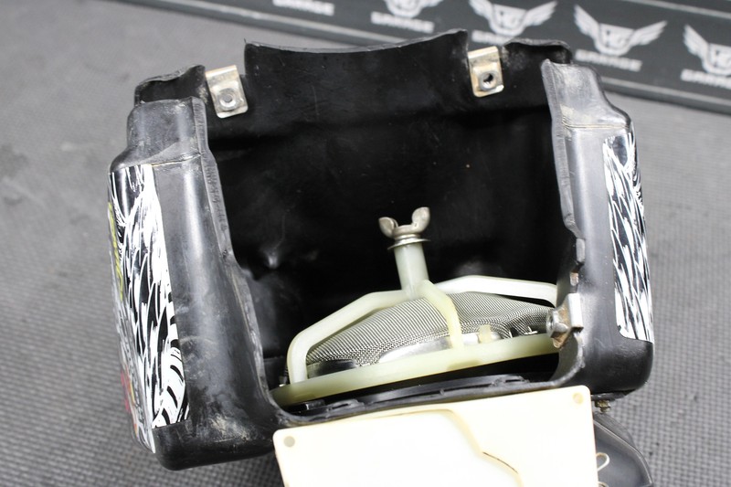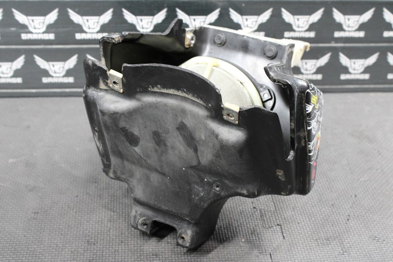 This airbox assembly is in very good condition and shows normal signs of wear. Has two small very minor cracks as shown. All threaded tabs intact. Mounts as it should. Ready to bolt on, and ride.