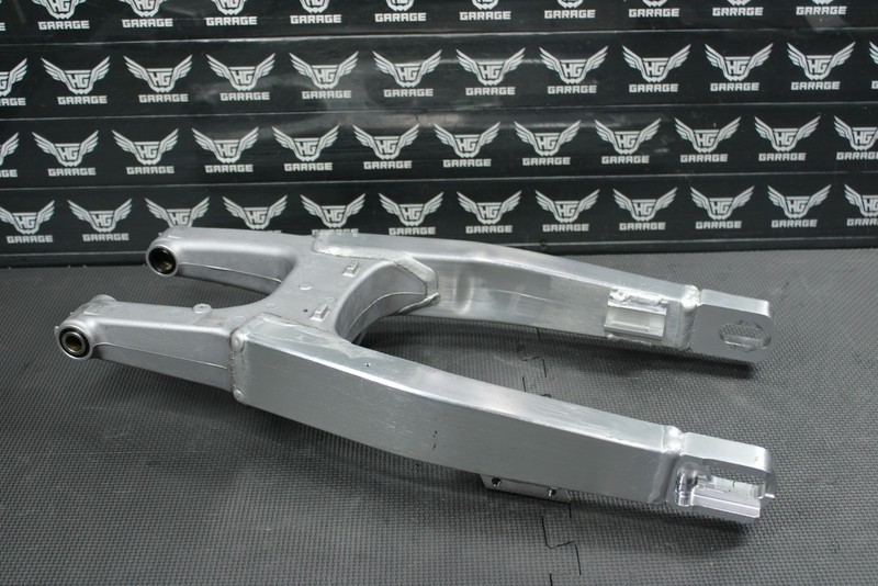 This swingarm is in very good condition and shows normal signs of wear. No cracks, welds, or repairs. All threaded holes fully intact. Both bearings are missing the collars as shown and will need to be replaced in order to run. Bearings themselves are in great shape with no rust or visible wear . Ready to assemble, and install.