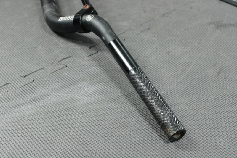 This handlebar is in good condition and shows normal signs of wear. No cracks, or cuts. Has a very minor bend, nothing major or easily noticable by any means whatsoever. Will need 1 1/8" bar adapters installed in order to run. Ready to mount, and ride.