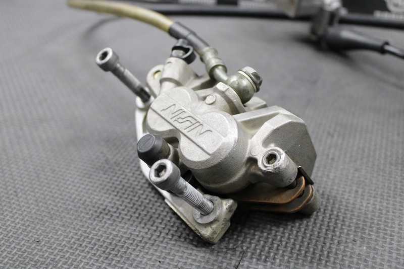 This OEM Nissin front brake assembly is in good condition and shows normal signs of wear. Fully functional with no leaks or issues. Master cylinder has an ASV bracket installed. No brake lever included, comes as shown. Good riding shape.