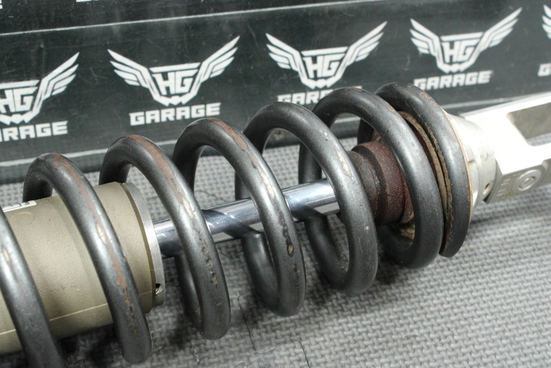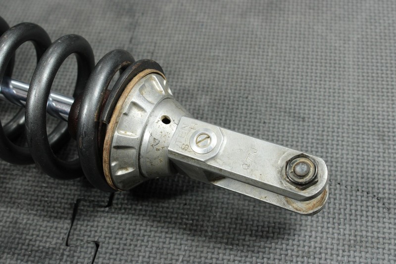 This rear shock is in good condition and shows normal signs of wear. Good rebound dampening. No leaks seen when tested, however seals are not guranteed, and is always recommended any used suspension be serviced before installed. Lower chrome, and shock body in good shape with low wear. Ready to mount, and ride.