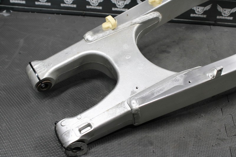This swingarm is in very good condition and shows normal signs of wear. No cracks, welds, or repairs. Has some very minor chain wear as shown. Bearings all feel tight and rotate freely. All threaded holes intact. Ready to bolt on, and ride.