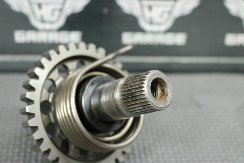 This kickstart gear with shaft is in very good condition and shows normal signs of wear. Nice functioning shape, removed from a strong running machine. Ready to install.