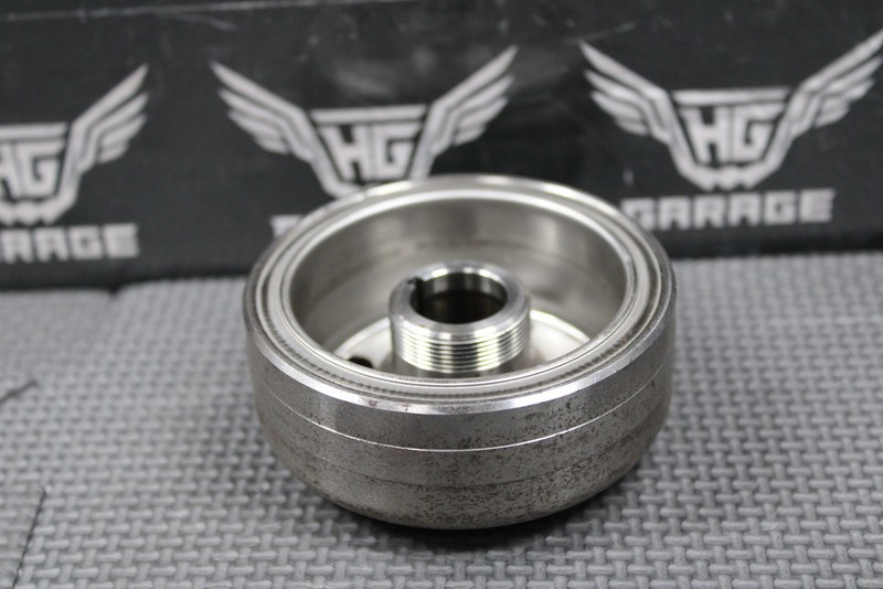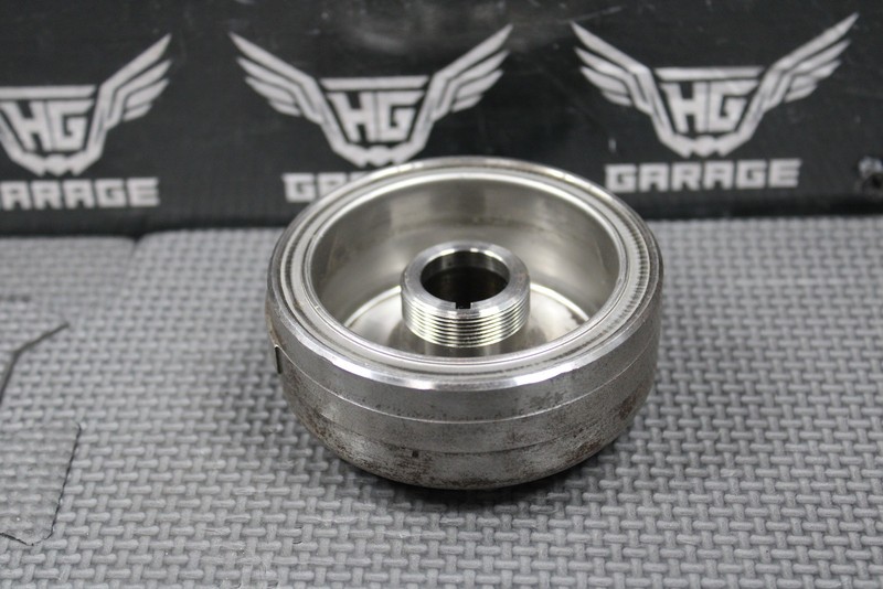 This OEM flywheel is in good condition and shows normal signs of wear. Good running shape. All threads and keyway are intact.