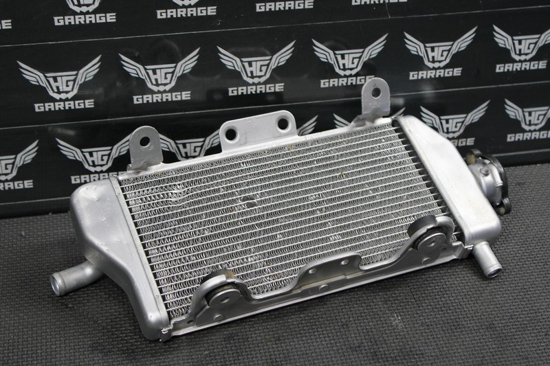 This right radiator is in very good condition and shows normal signs of wear. No cracks, leaks, or repairs. Has some very minor bends as shown, however mounted up with no issues. Ready to bolt on and ride.