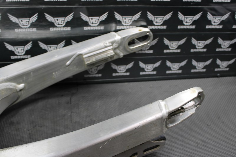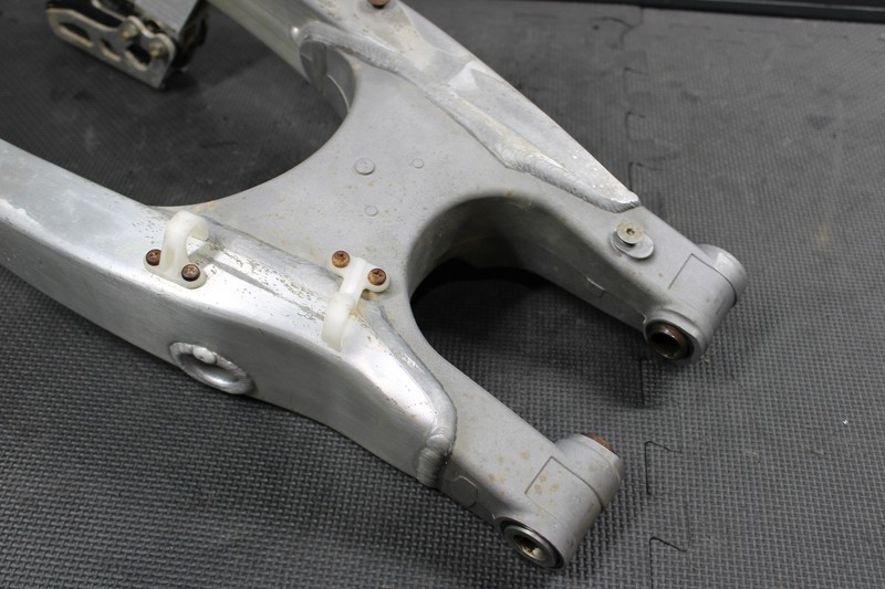 This swingarm is in good condition and shows normal signs of wear. Has some decent chain wear as shown, just through to bearing housing, recommend repairing for optimal performance. Bearings rotate freely and feel tight. All threads are intact and thread as should. Can run as is, but is not recommended.