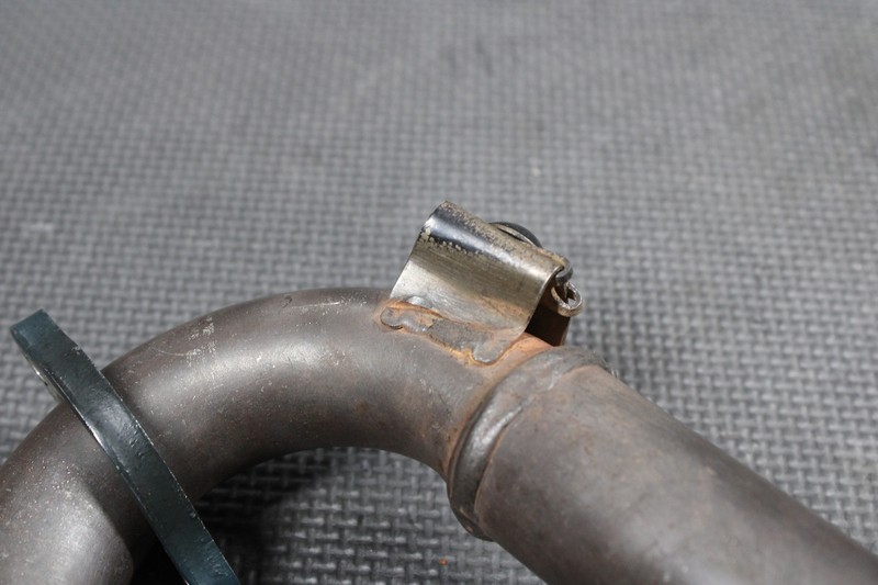 This muffler is in good condition and shows normal signs of wear. Both heat shield mounts are cracked as shown, and heatshield does not mount. Pipe still mounts, seals as it should, and is perfectly usable as is. Ready to bolt on!
