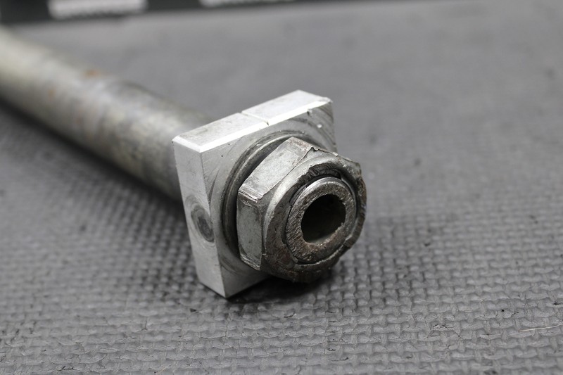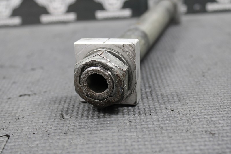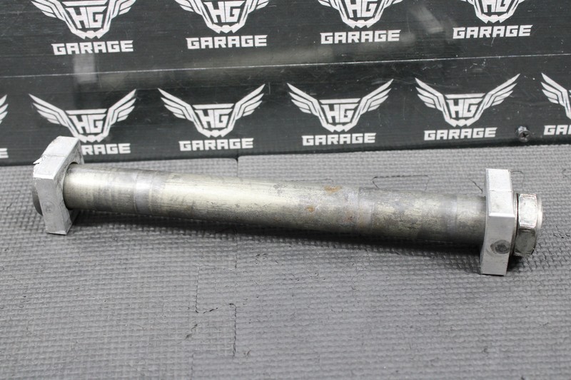 This rear axle is in good condition and shows normal signs of wear. Has some cosmetic road rash on the end of shaft and nut, but threads on and torques with no issues. Ready to install and ride!