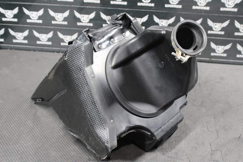 This airbox assembly is in very good condition and shows normal signs of wear. One top mounting tab is cracked as shown, but still functioned, and mounted properly. Has one minor burnspot from exhaust as shown. No other cracks or issues. Removed from a strong running machine. Ready to install and ride.