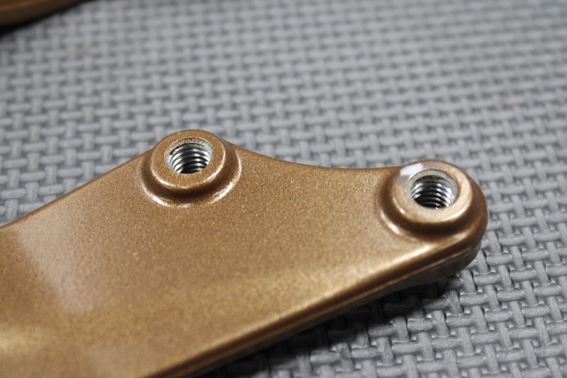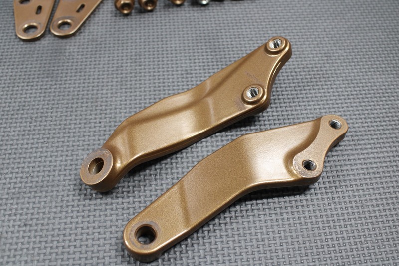 This engine mount set is in very good condition and shows normal signs of wear. Mounts have been painted bronze and are in good condition. Includes all bolts as shown (missing one of the head hanger to engine mounting bolts). Good riding shape.