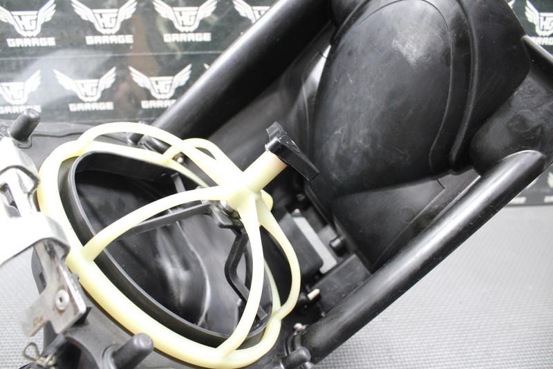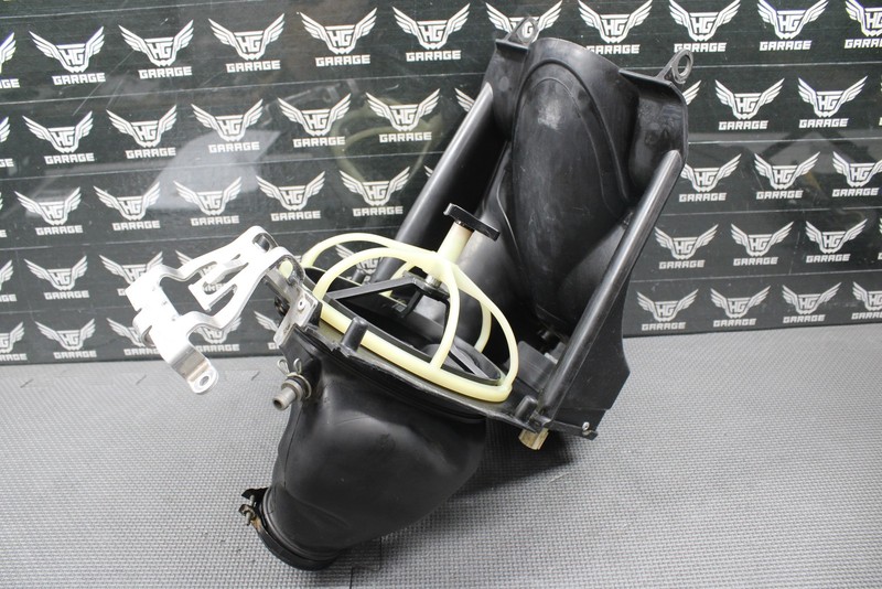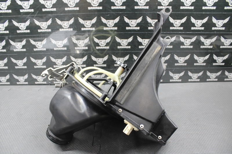 This OEM air cleaner is in good condition and shows normal signs of wear. No cracks or holes. All rivets and mounts are intact. Intake boot in good shape with no holes, but does have the small pull tab ripped off as shown. Still fully seals and mounts on the throttle body. Good clean airbox assembly.
