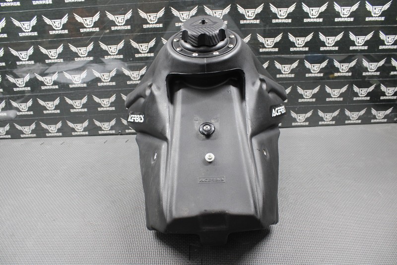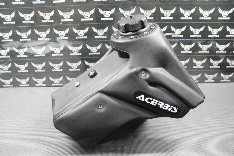This Acerbis 2.7 gallon oversize gas tank is in very good condition and shows normal signs of wear. No cracks or leaks. All threaded inserts are fully intact. Nice condition tank with no issues. Acerbis PN: 2160170001